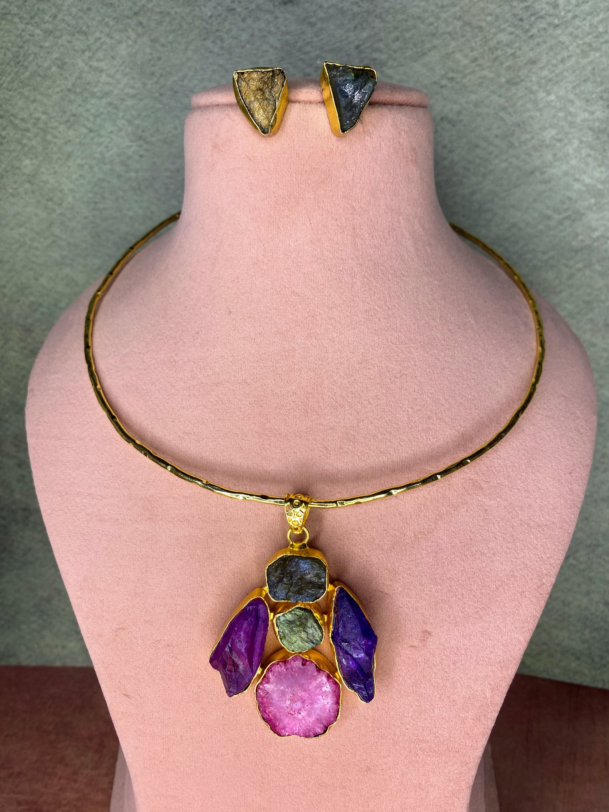 Natural Stone Triangle Necklace